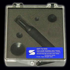 ● 本產(chǎn)品采用美國MTI技術(shù),獨(dú)特的吸盤結(jié)構(gòu),并提供六種吸盤尺寸:3.2mm/6.4mm/9.5mm/12.5mm/16mm/19mm,以適合不同尺寸、不同重量的器件,最大吸力的參考值為3g/30g/50g/185g/250g/500g。另提供兩種不同特性的材料:A類材料:耐酸堿、耐一般性有機(jī)溶劑,耐高溫,顏色為暗棕紅色;B類材料高溫導(dǎo)電材料,顏色為黑。