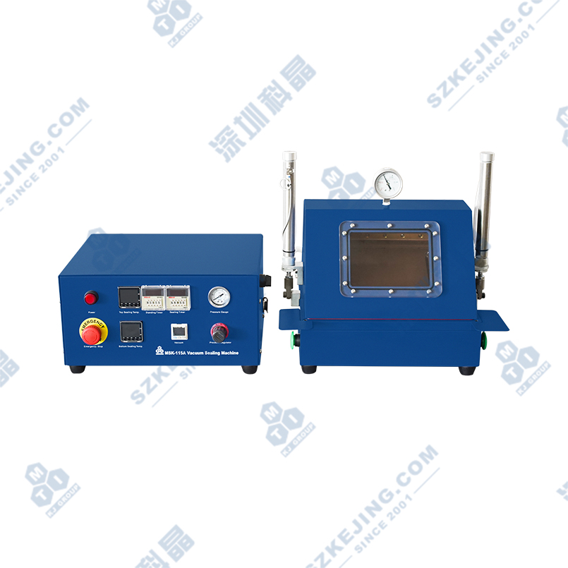 應用范圍 :MSK-115A-III一體機(頂側(cè)封、真空靜置、真空封口一體機)可應用于軟包裝鋰電池鋁塑殼的封裝工藝。本機設計緊湊,可放置到手套箱內(nèi)使用,可實現(xiàn)加熱封口、真空除氣、真空封口等功能。該設備工作腔室真空度保持度好,封口效果優(yōu)良,電池成品良好。