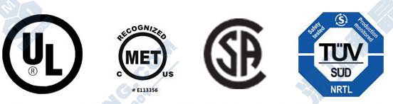 ● CE認證 ● 所有電器元件(輸入電壓≧24V)都通過了UL / MET / CSA認證