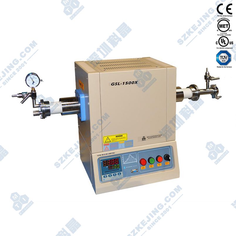 GSL-1500X是一款通過CE認(rèn)證的小型高溫管式爐,其爐管為直徑2" 的剛玉管,加熱元件為硅碳棒。儀器本身帶有兩個真密封法蘭(法蘭上已安裝機(jī)械壓力表和不銹鋼截止閥)??刂葡到y(tǒng)采用高精度可控硅移相觸發(fā)控制,其控溫精度為+/-1°C,控溫方式采用30段程序設(shè)置,最高溫度可達(dá)到1500℃。