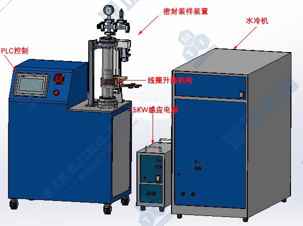 ● 由15KW感應(yīng)加熱電源、密封石英管裝樣及測溫裝置、線圈和坩堝伺服升降機(jī)構(gòu)、水冷機(jī)以及PLC控制系統(tǒng)組成 |