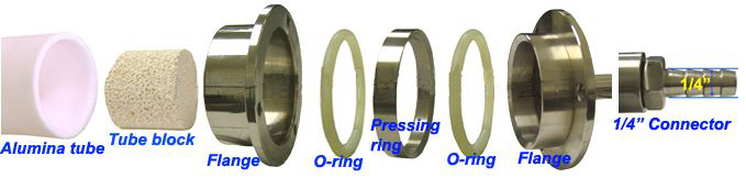 ● 標(biāo)配有一對(duì)不銹鋼真空法蘭和高溫硅膠密封圈 ● 可選:為了更快的獲得較高的真空度,建議使用KF25不銹鋼法蘭(如下圖)、不銹鋼波紋管和數(shù)字式真空顯示計(jì) ![]() |