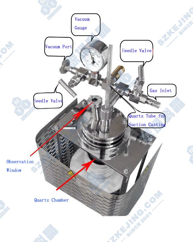 SP-15VSC是一款通過MET質(zhì)量認(rèn)證且頂部帶有真空吸鑄裝置的15KW感應(yīng)加熱/熔化系統(tǒng)。這種獨(dú)特的結(jié)構(gòu)設(shè)計(jì)通過將熔融金屬直接抽吸到頂部石英管中來鑄造產(chǎn)品(3-5mm直徑的合金棒)。真空吸鑄裝置所施加的吸力能夠讓熔體快速運(yùn)動(dòng)從而使石英管內(nèi)的熔體的快速凝固。該套設(shè)備采用吸鑄法鑄造合金能有效減小合金收縮缺陷,是制備小直徑合金棒的理想工具。
