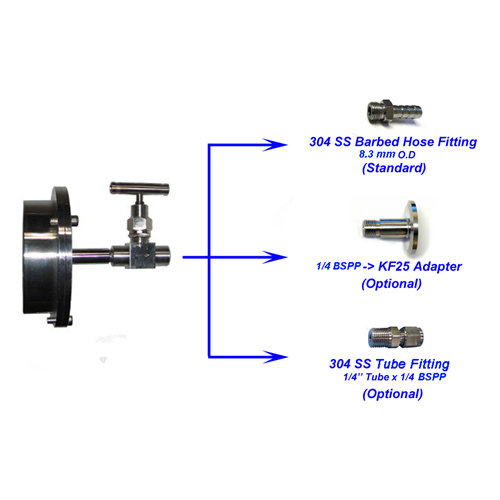 ● 一對(duì)SS304不銹鋼真空法蘭與雙高溫硅O形環(huán)包括在內(nèi) ● 兩個(gè)針閥已分別安裝在兩個(gè)法蘭上(下圖) ● 一個(gè)真空壓力表安裝在一側(cè)法蘭(下圖) ![]() |