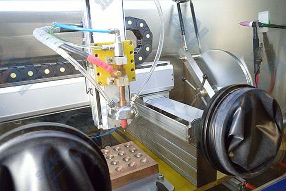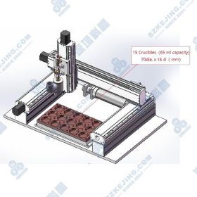 ● 水冷鎢電極固定在X-Y-Z運(yùn)動機(jī)構(gòu)上,X-Y-Z軸位置控制器采用觸摸屏控制。程序設(shè)定并啟動后,控制器可以按程序?qū)㈡u電極移動到每一個水冷坩堝上面進(jìn)行熔煉。 |