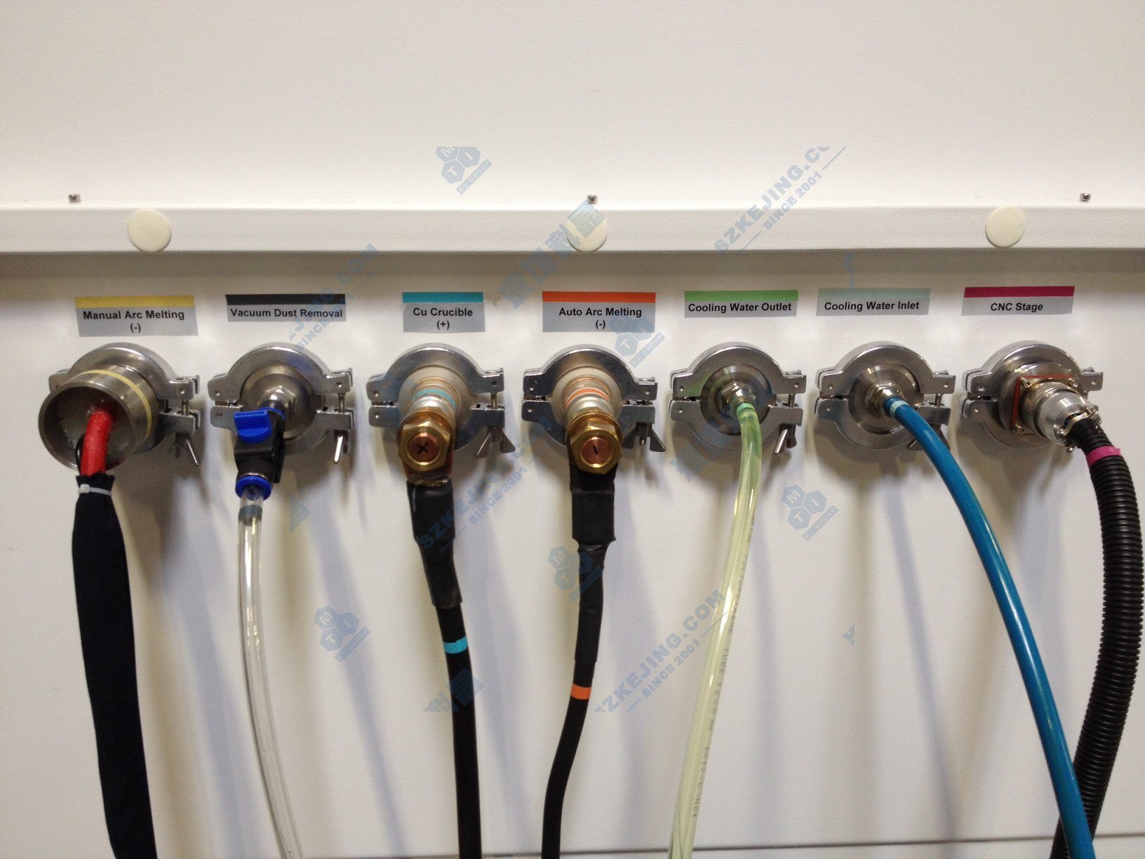 ● 電弧熔煉電極,銅坩堝都需要通入冷卻水,系統(tǒng)所配水冷機(jī)的流速為16L/min |