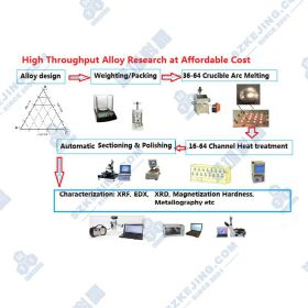 SP-MSM360是一款32工位的高通量電弧熔煉系統(tǒng),專門針對于合金的結(jié)構(gòu)和相圖研究。此系統(tǒng)由循環(huán)手套箱,X-Y-Z運(yùn)動機(jī)構(gòu)和電弧熔煉攪拌系統(tǒng)組成,一次可熔煉32組樣品(2個16工位水冷銅坩堝嵌入手套箱中),熔煉過程在循環(huán)手套箱里完成,水氧含量低于1ppm。對于采用高通量方法來探索新一代高溫合金、高熵合金等,此款系統(tǒng)是一套經(jīng)濟(jì)且高效的實(shí)驗儀器。