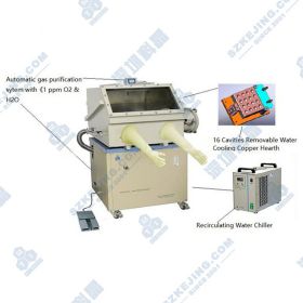 SP-MAM-16是一款16孔位手動電弧熔煉爐。一個16孔位的水冷銅坩堝安裝在一個除水除氧的循環(huán)手套箱內(nèi)(水氧含量< 1 ppm)。一個手動移動的熔煉槍,可使樣品的熔煉溫度達到3000℃。此套設備對于高通量方法合金研究,如結(jié)構和相圖探索是一個即高效又廉價的實驗工具。