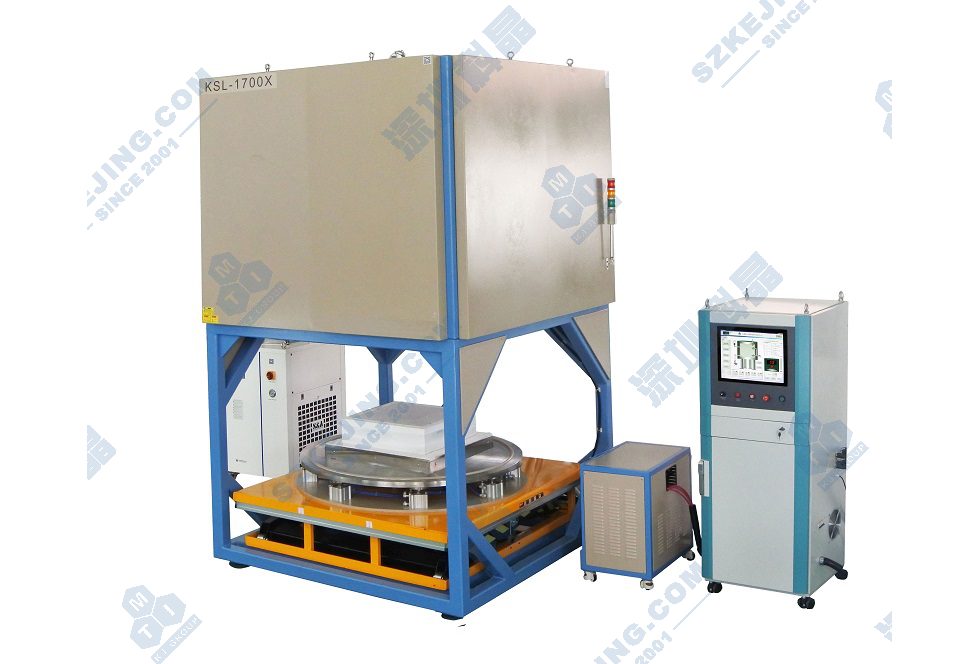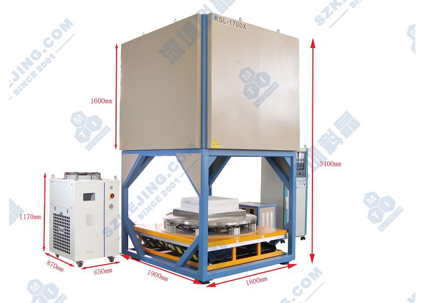 應(yīng)用范圍:KSL-1700X-GS216是一款下轉(zhuǎn)載式大型氣氛箱式爐(容積216L),加熱腔體內(nèi)可通入惰性氣體,其最高溫度可加熱到1650℃。此款氣氛箱式爐,爐膛材料為高純氧化鋁纖維磚,加熱元件為鉬合金,腔體尺寸為600×600×600mm.設(shè)備底部有一不銹鋼密封法蘭(帶有水冷夾層),保證材料可在真空或氣氛保護(hù)環(huán)境下進(jìn)行熱處理。