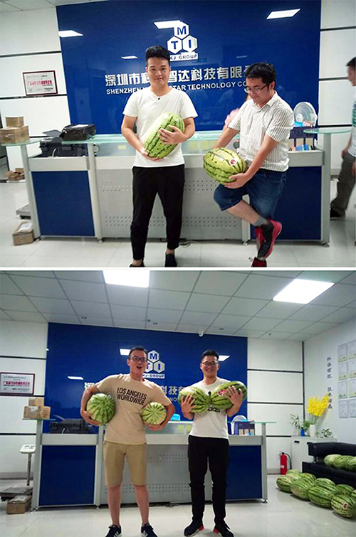 別說在車間的伙伴們了,就是大部分時間呆在辦公室的小編我也是熱的不要不要的,于是給出了個點子,“買瓜分瓜”吧!不知怎的,領(lǐng)導(dǎo)們競?cè)徊杉{了小編的意見,于是就有了冰爽而溫情的現(xiàn)場直播:
