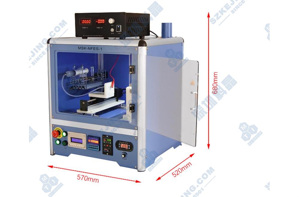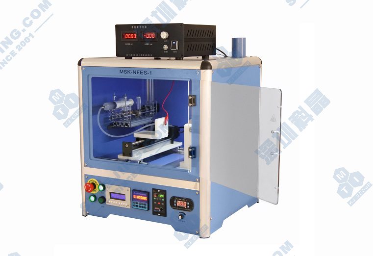 MSK-NFES-1是一款簡易型靜電紡絲機,專門用于制作納米線或是在基底上進行涂層。儀器中的注射泵可連續(xù)不斷地向噴頭輸送流體,且供液速度可調(diào),滿足不同紡絲溶液的需求,同時高壓電源可為電紡絲提供長時間穩(wěn)定的電場,其電場強度為0-30kV。MSK-NFES-1的噴頭和收集裝置都封閉在一通風柜中,配備抽風裝置進行軸向抽風,此款設(shè)備可滿足靜電紡絲基本實驗要求,性能完備,操作方便,是一款性價比極高的靜電紡絲系統(tǒng)。