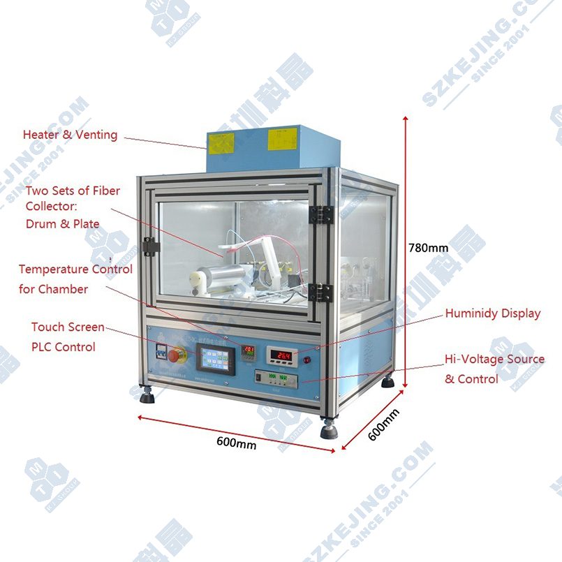 ● PLC觸摸屏控制,操作簡單方便 ● 可設定控制注射泵速度、X-Y軸收集平臺移動速度、高速收集筒轉速、針頭往復擺動速度、腔體溫度、排風、照明等參數(shù) |