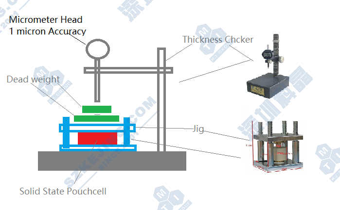 JIG-1是一款機(jī)械夾具,專門用于固定固態(tài)電池或液流電池測試套件,并對電池加壓。同時也可與配重塊和測厚儀配合,來測量固態(tài)電池材料的膨脹壓力和膨脹率