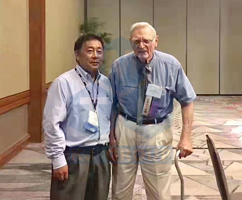 深圳科晶同事們于2018年在浙江湖州會議上遇見了另一位諾貝爾獲獎者,同樣令人尊敬的世界級化學界國際大咖坦利·威廷漢(Stanley Whittingham)老先生,非常榮幸光臨MTI深圳科晶展臺并一起合影留戀