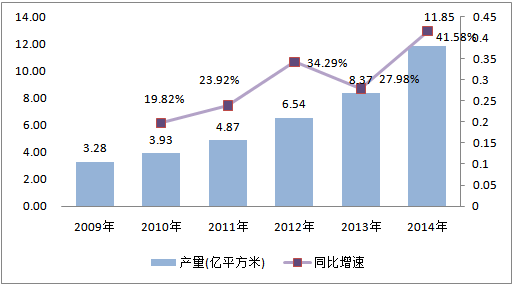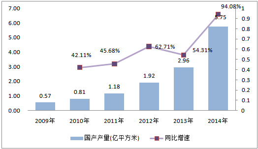圖4 2009-2014年全球隔膜產(chǎn)量:億平方米