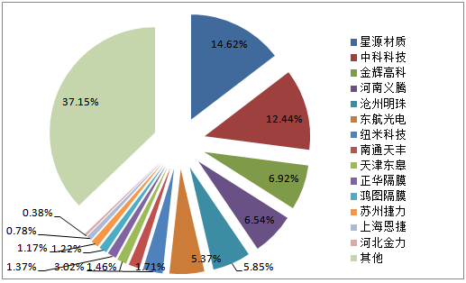 圖9 2014年中國隔膜產(chǎn)業(yè)主要企業(yè)市場占有率(按銷量)