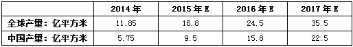 表2 2015-2017年全球及中國隔膜產(chǎn)量預(yù)測