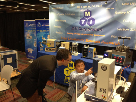 科晶聯(lián)盟-美國MTI于2016年6月20日-23日參加在美國芝加哥舉辦的第118屆國際鋰電會議。此會議是國際高端鋰電人員的一個交流會,來自世界各地的鋰電領(lǐng)軍人物在會上做了報告。同時,MTI在會議期間展示了雙軸小型混料機(jī)、陶瓷軋輥機(jī)、6工位加熱提拉鍍膜機(jī)、小型高壓氧爐、等離子清洗機(jī)、卷對卷涂覆機(jī)和固態(tài)電池可分離裝置等最新產(chǎn)品,并受到與會者的廣泛關(guān)注。
