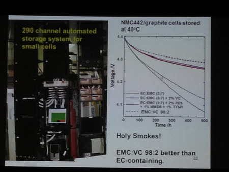 Jeff Dahn教授在會議上做一場演講,通過的他的基礎(chǔ)研究,對鋰電池有了新發(fā)現(xiàn)。