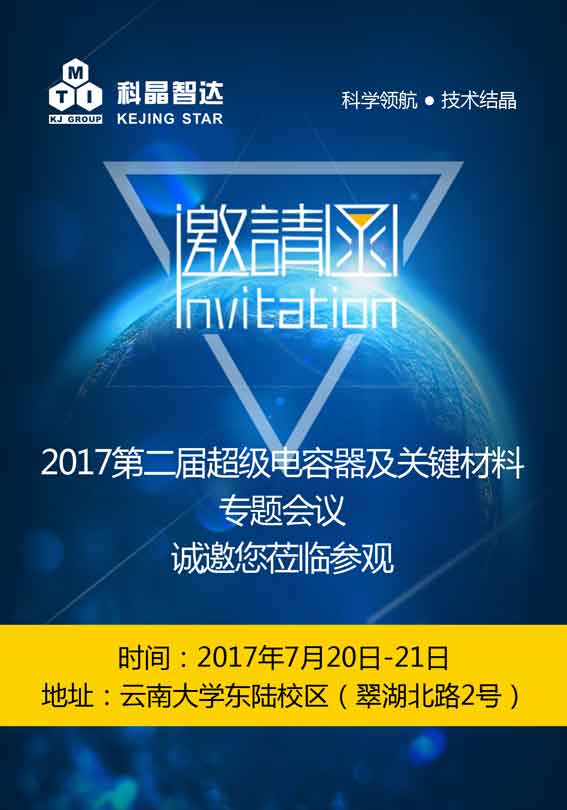 深圳科晶將于7月20-21日在云南大學(xué)參加2017第二屆超級(jí)電容器及關(guān)鍵材料專題會(huì)議,此次會(huì)議由 “中國(guó)化工學(xué)會(huì)儲(chǔ)能工程專業(yè)委員會(huì)”主辦,“云南大學(xué)新型儲(chǔ)能研究所”、“昆明云大新能源有限公司”、“燕山大學(xué)環(huán)境與化學(xué)工程學(xué)院”聯(lián)合承辦。支持單位: 深圳市科晶智達(dá)科技有限公司、 上海奧威科技開(kāi)發(fā)有限公司。