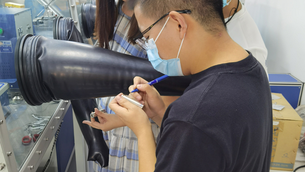 ——學(xué)員在自己做的圓柱電池上寫(xiě)上自己的名字