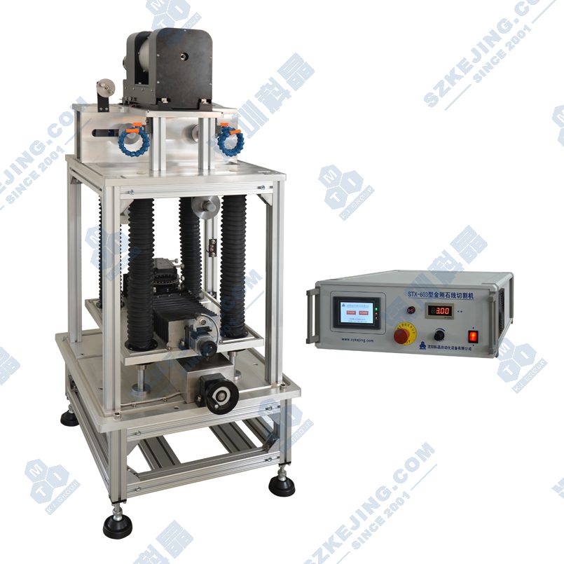 應(yīng)用范圍:STX-603A金剛石線切割機(jī)是經(jīng)過CE認(rèn)證的切割設(shè)備。主要用于材料分析樣品的精密切割,例如陶瓷、晶體、玻璃、金屬、巖石、熱電材料、紅外光學(xué)材料、復(fù)合材料以及生物醫(yī)學(xué)材料等。本機(jī)尤其適合于進(jìn)行超薄片的精密切割,薄片厚度可以達(dá)到0.2mm。STX-603金剛石線切割機(jī)是連續(xù)切割型金剛石線切割機(jī),設(shè)置好切割程序后試樣連續(xù)進(jìn)給,無需手動(dòng)調(diào)節(jié),切割后的樣品尺寸精度高,在±10μm的范圍內(nèi)。STX-600系列金剛石線切割機(jī)的切割線采用單根線循環(huán)往復(fù)的運(yùn)動(dòng)模式,可使用的線的長(zhǎng)度長(zhǎng)(80m),一次上線的使用壽命長(zhǎng),大大提高了切割效率。張緊輪采用氣動(dòng)張緊的模式,氣壓的大小可根據(jù)線徑的粗細(xì)進(jìn)行調(diào)整,當(dāng)線徑過細(xì)時(shí)可有效的保護(hù)切割線不會(huì)因張緊力過大而斷裂。當(dāng)切割機(jī)配合電動(dòng)轉(zhuǎn)臺(tái)使用時(shí)可進(jìn)行精密切割,切割出的樣品表面狀態(tài)好,呈無線痕的磨砂面。