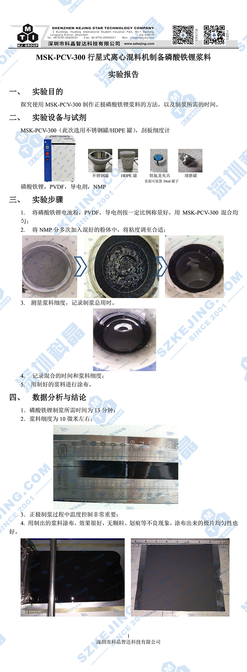 MSK-PCV-300 磷酸鐵鋰制漿實驗報告