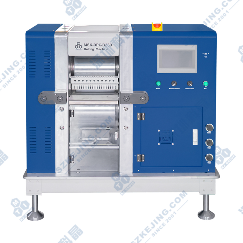 設(shè)備由液壓系統(tǒng)提供壓力進行輥輪軋制,適用于對軋制力和軋制縫隙一致性要求較高的場合。軋輥直徑為230mm,最大軋制幅寬為200mm,最高軋制力可達80噸,且軋制厚度均勻性為±1.5μm,可實現(xiàn)高壓實密度、高軋制精度的要求。適用于鋰離子電池行業(yè)的正、負極片的軋制。